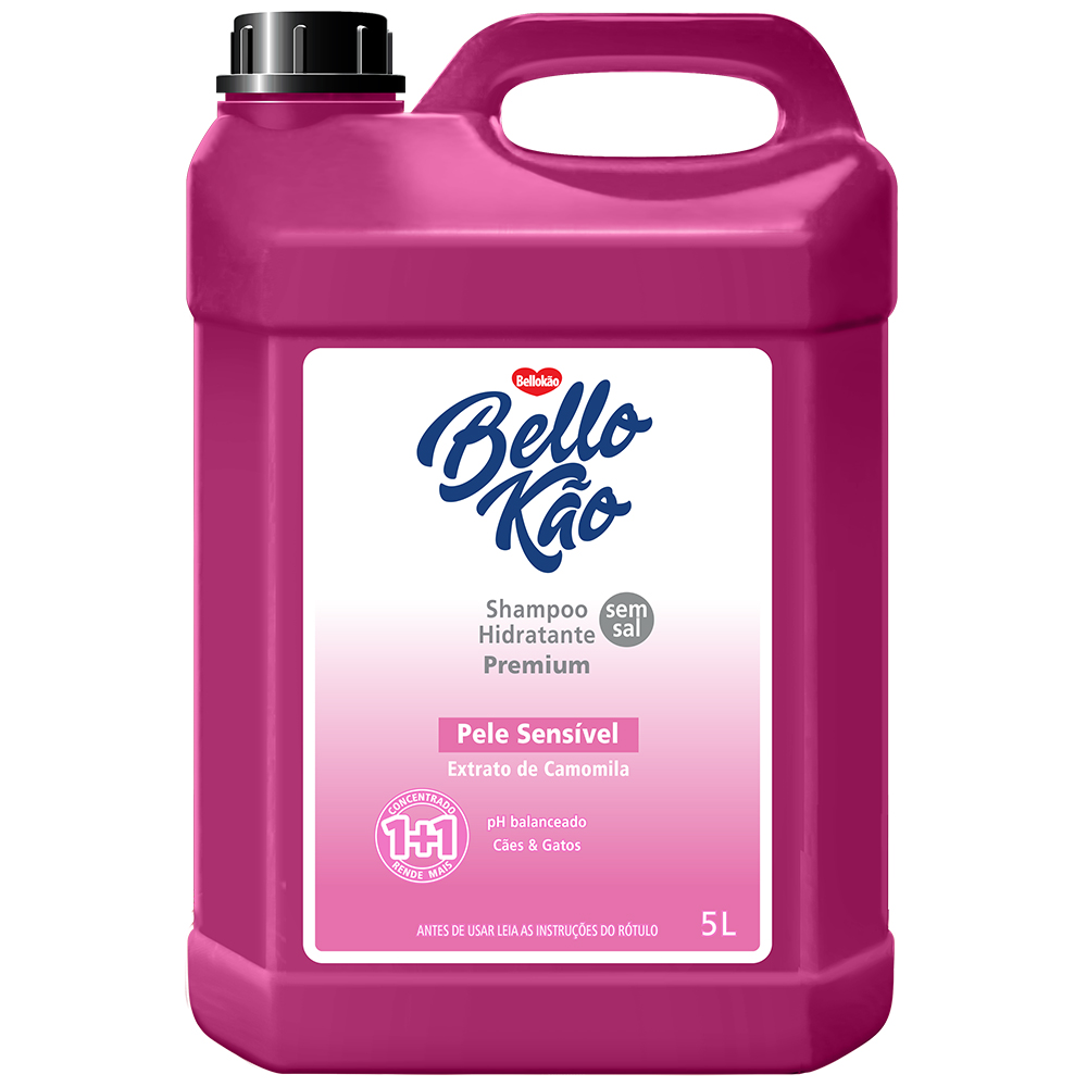 O Shampoo Bellokão Pele Sensível, formulado com Camomila e livre de sal, foi desenvolvido especialmente para pets com pele delicada. Evita coceiras e irritações na pelagem, proporcionando conforto, suavidade e bem-estar durante o banho.